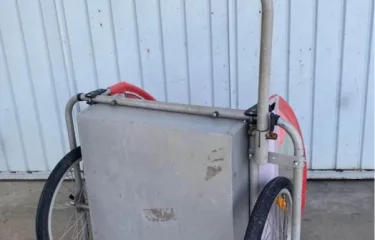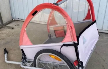 Vând remorcă ușoară pt. bicicletă sau trotinetă din aluminiu,demontabilă,cu roți de 20 tzoli,cu prindere rapidă,puțin utilizată,stare f. bună,preț 500 lei, Timișoara,tel. 0722169925.
